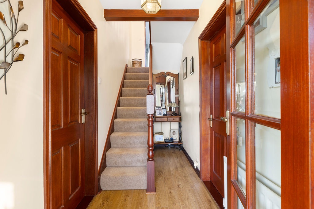 Hallway :- Laminate wooden flooring. Mahogany balustrade staircase.